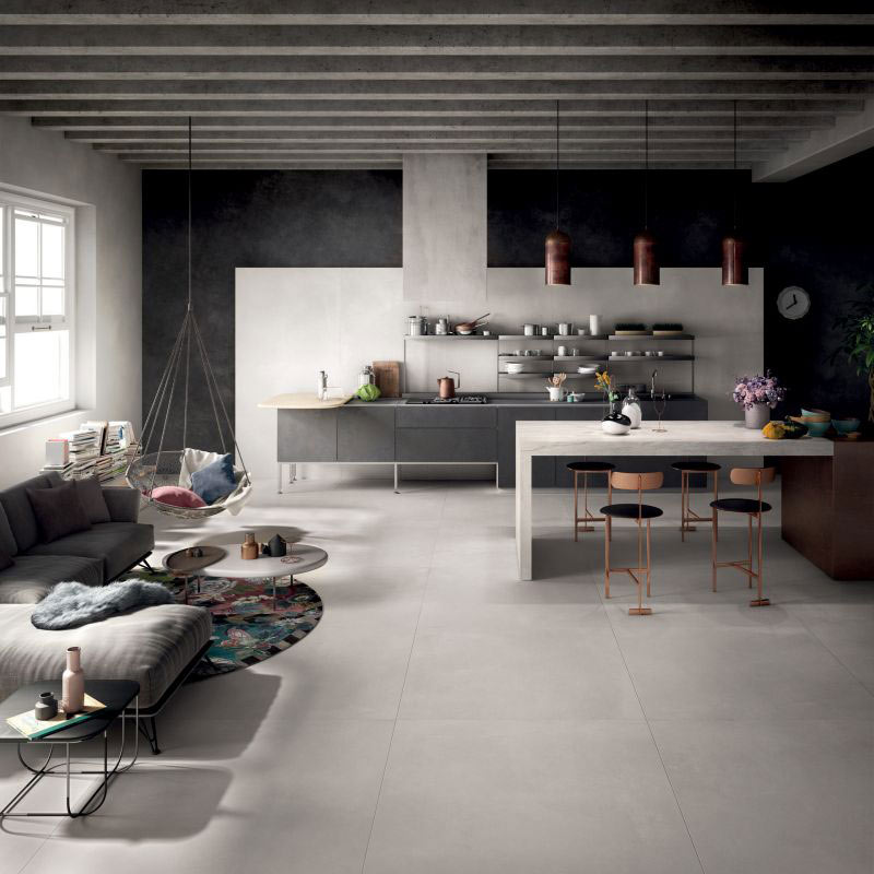 Az Ariana Concrea Plain kollekciója az ipari felületek minimalista újraértelmezését kínálja, amely a gyanták és a betonok stilisztikai fúzióján alapul. Ez egy sokoldalú padló- és fali csempe kollekció, amely 120×240 cm-es kerámialapokból és minden olyan részb?l áll, amely bármilyen tervezési követelmény teljesítéséhez szükséges. A Concrea Plain négy színben kapható: fehér, ezüst, szürke és csont, valamint sima, puha tapintású felület.